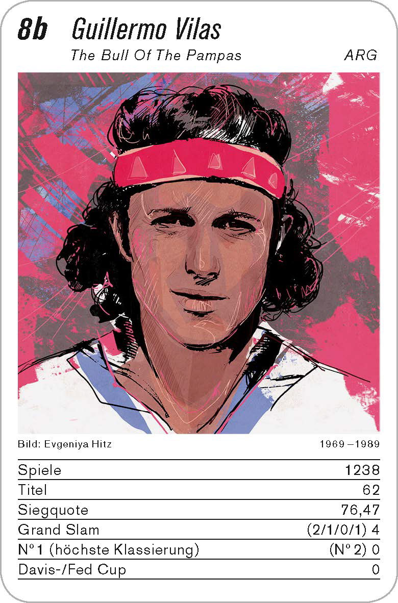 I made four portraits of the legendary tennis players (Guillermo Vilas, Maria Bueno, Gustavo Kuerten, Gabriela Sabatini) for the new card game of the Legendenquartett. https://www.legendenquartett.ch/tennis/